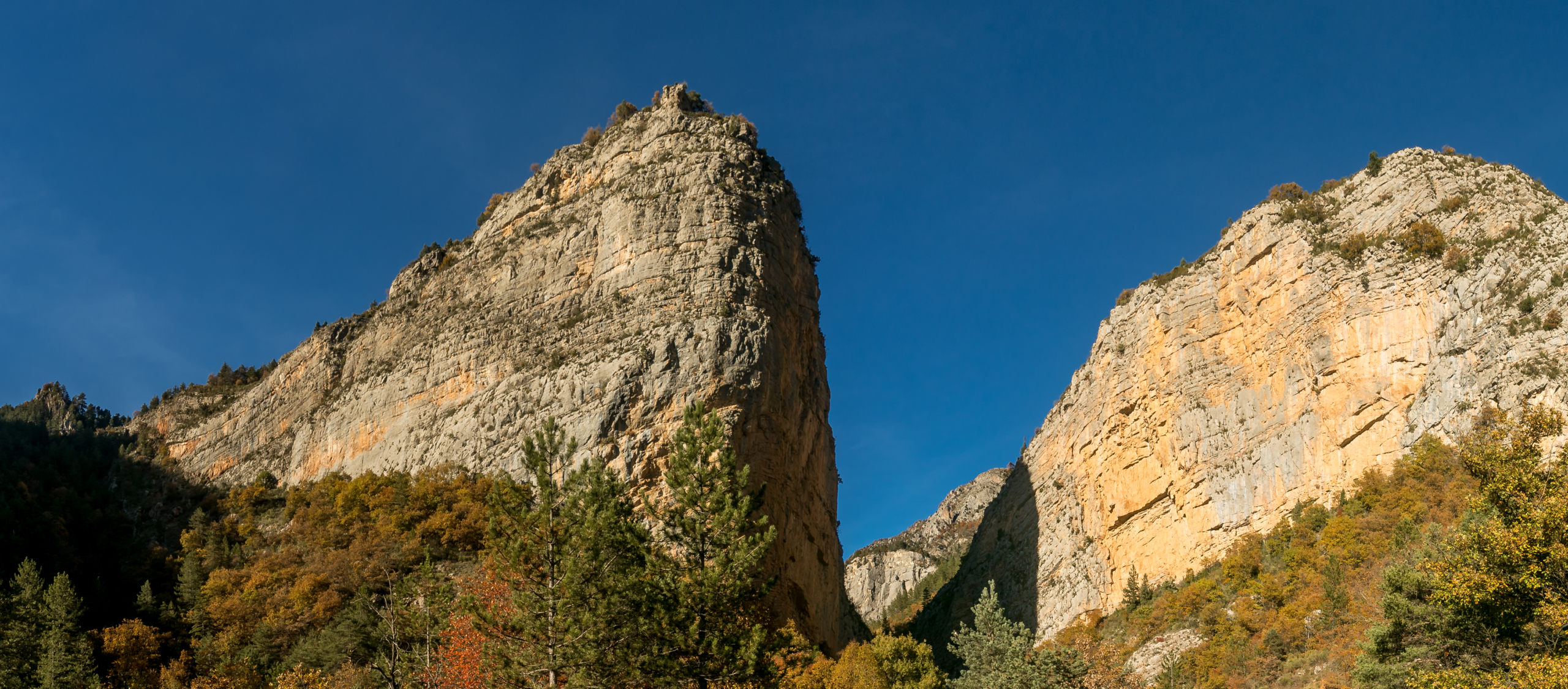 la route sillonne dans les clues étroites, taillées dans la roche par les torrents.