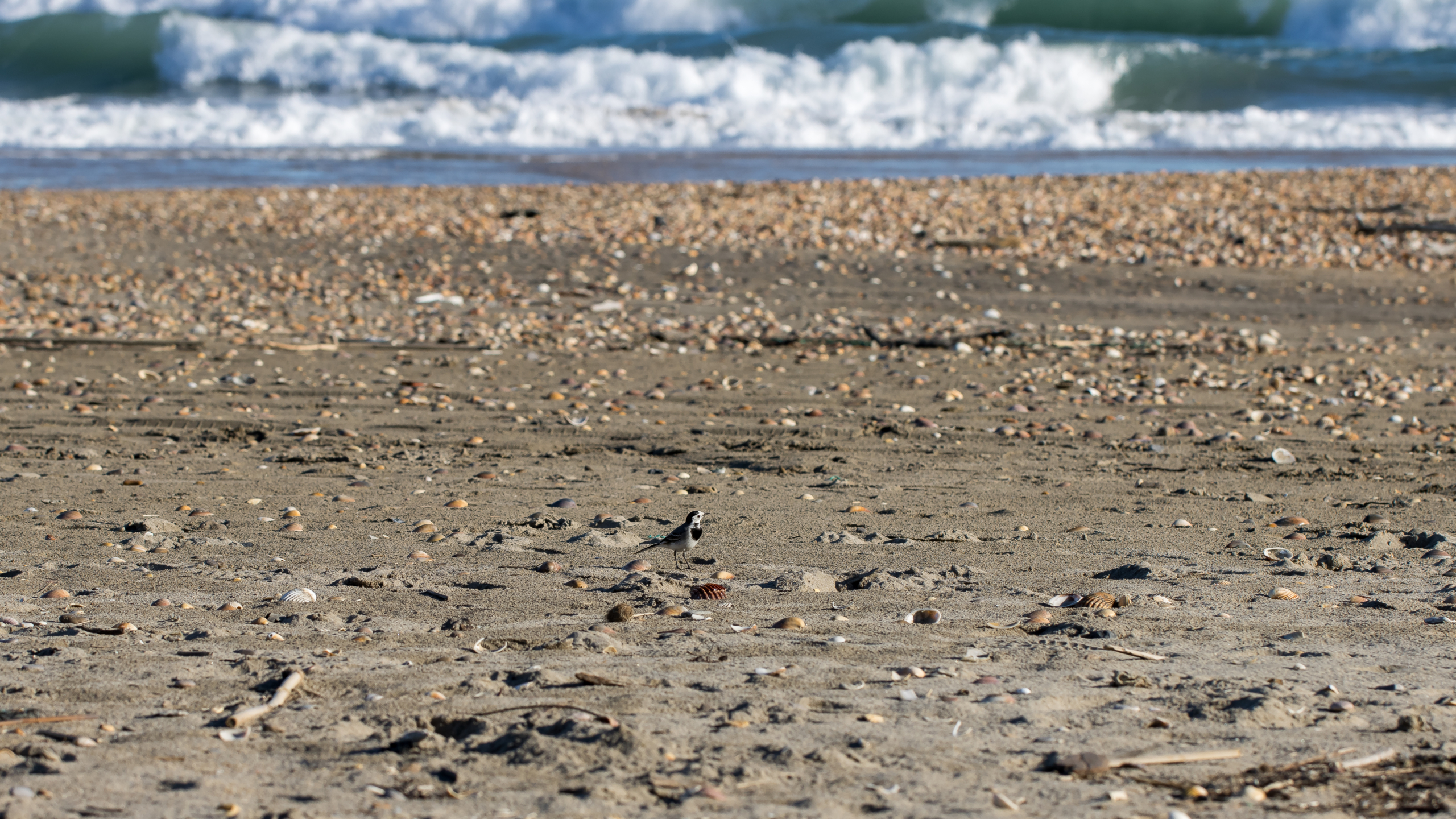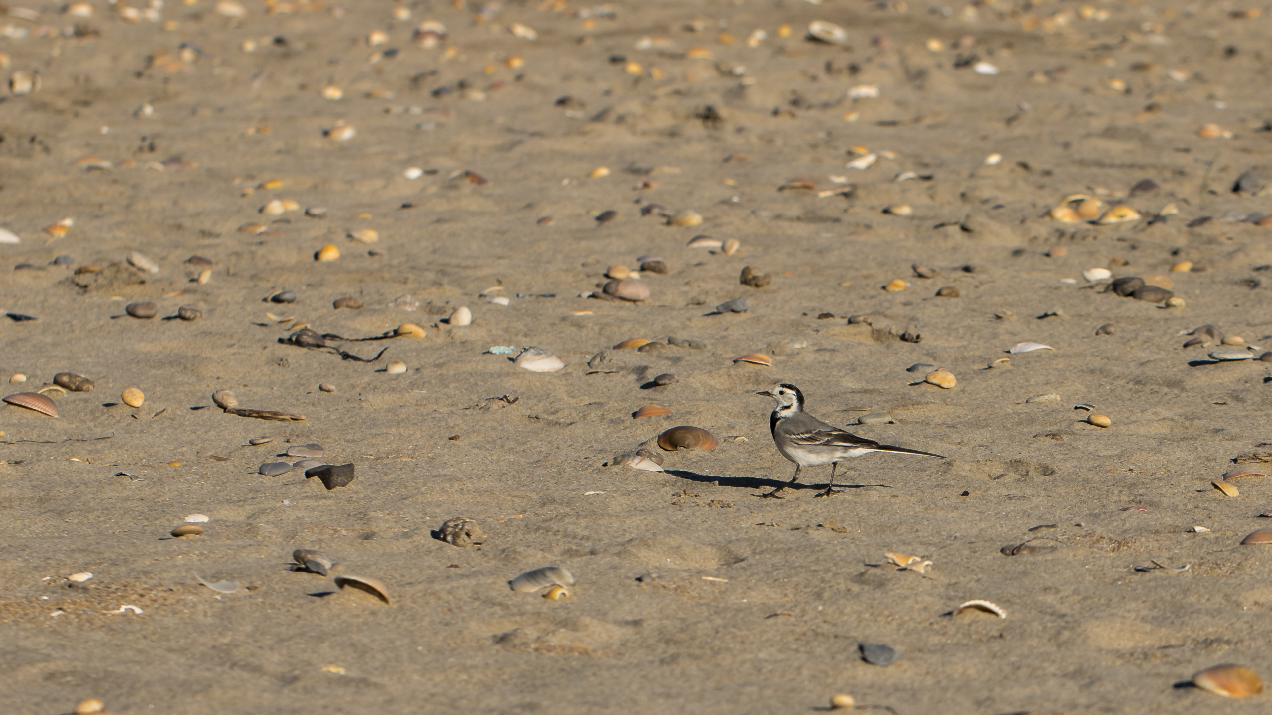 Sur la plage, juste devant moi, gambadait une jolie petite Bergeronnette grise…