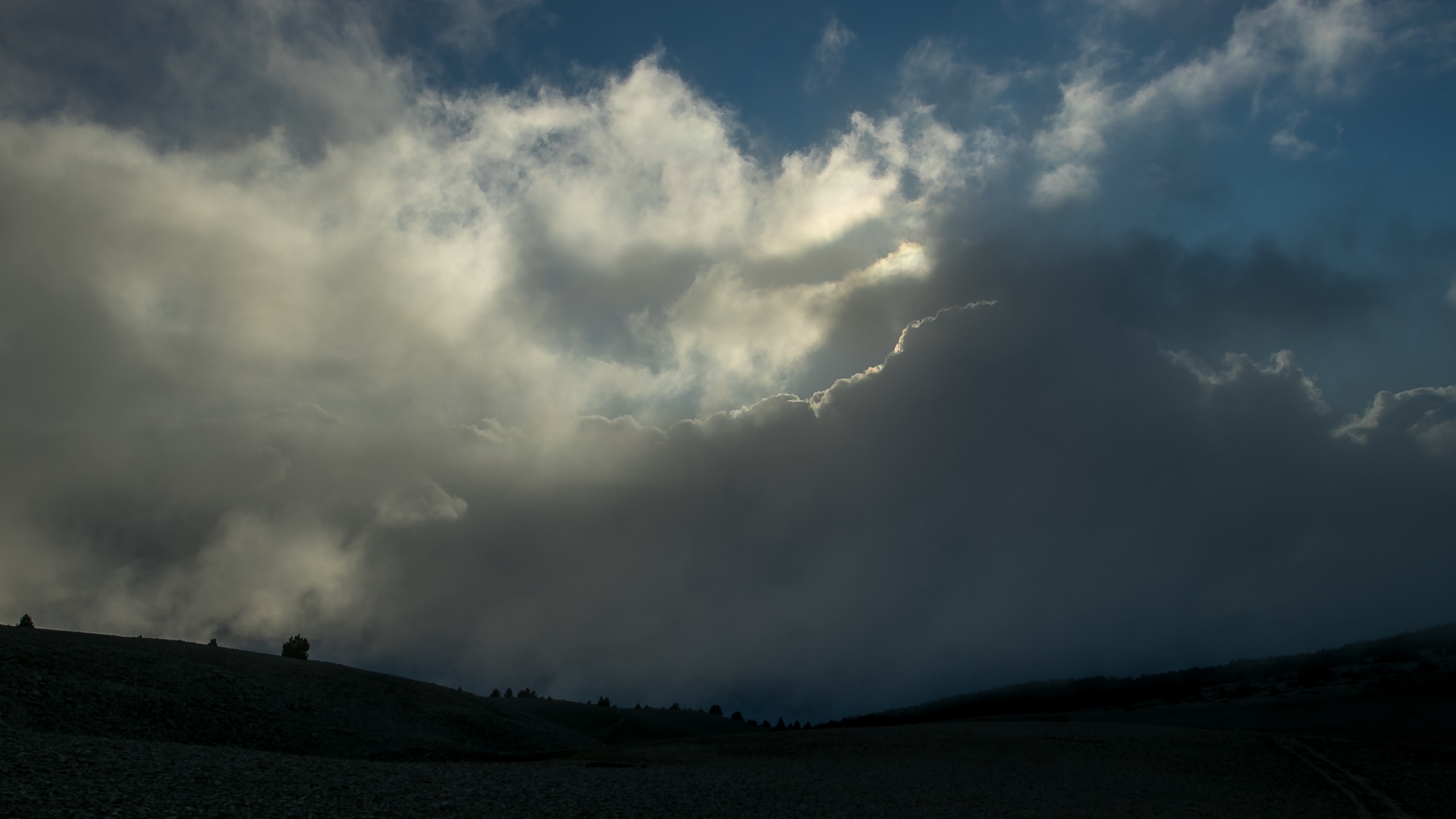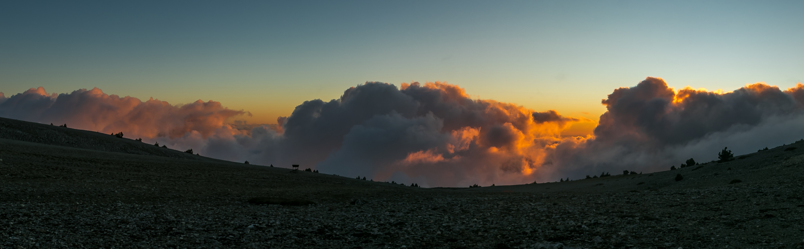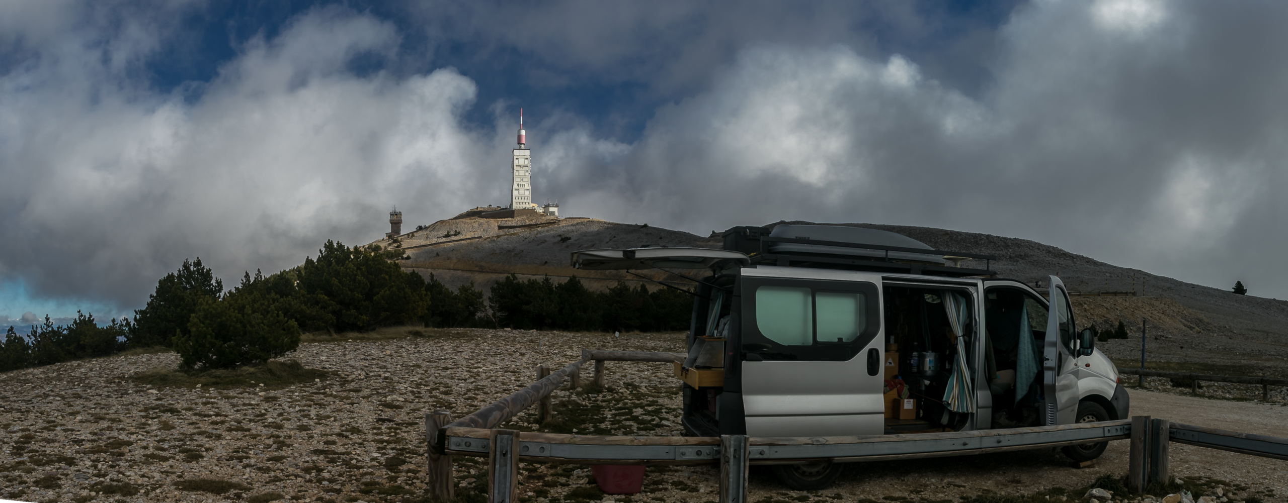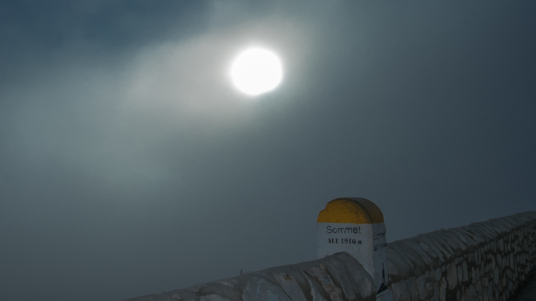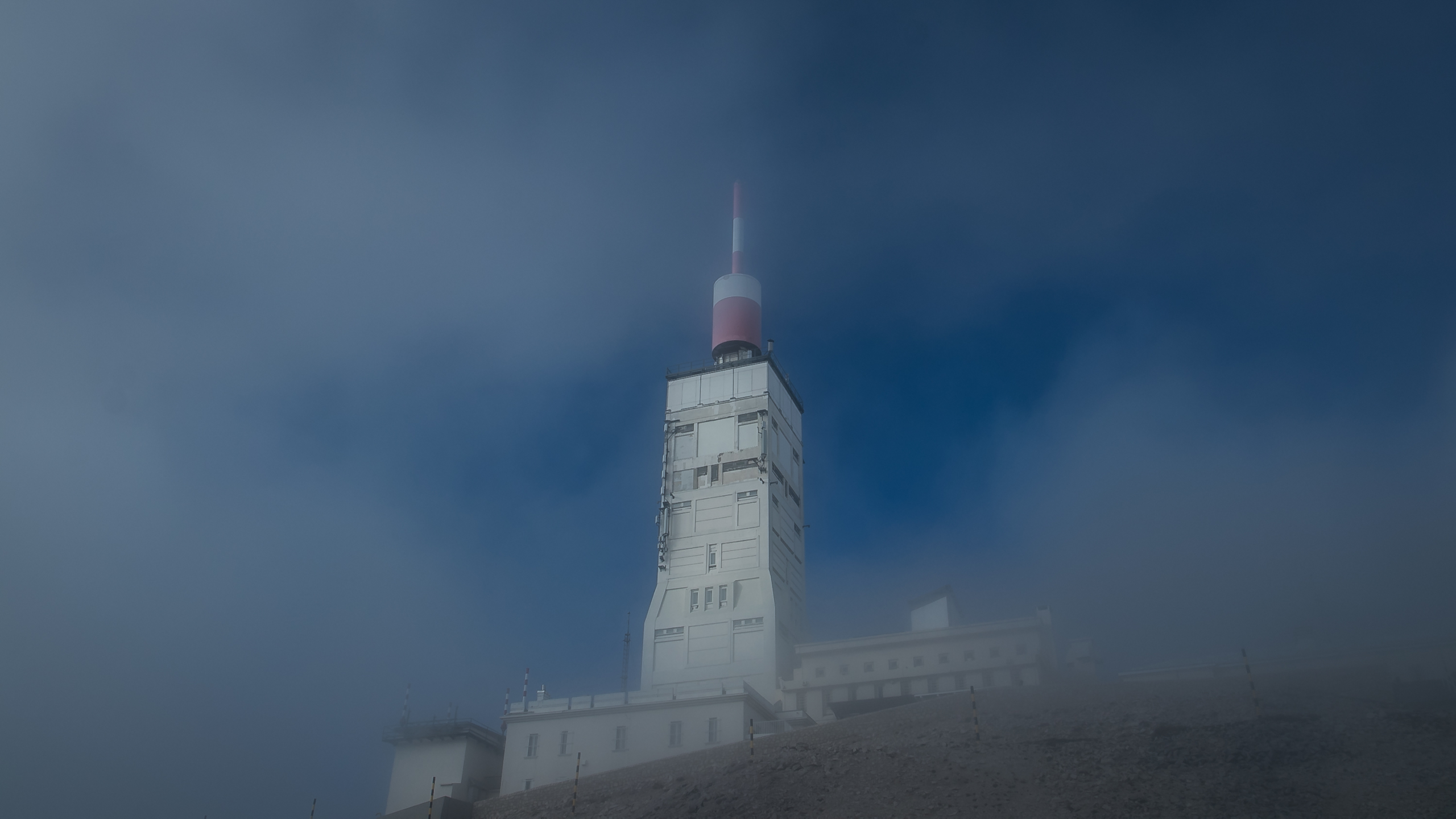 Le mont Ventoux, accroché par les nuages, comme souvent.