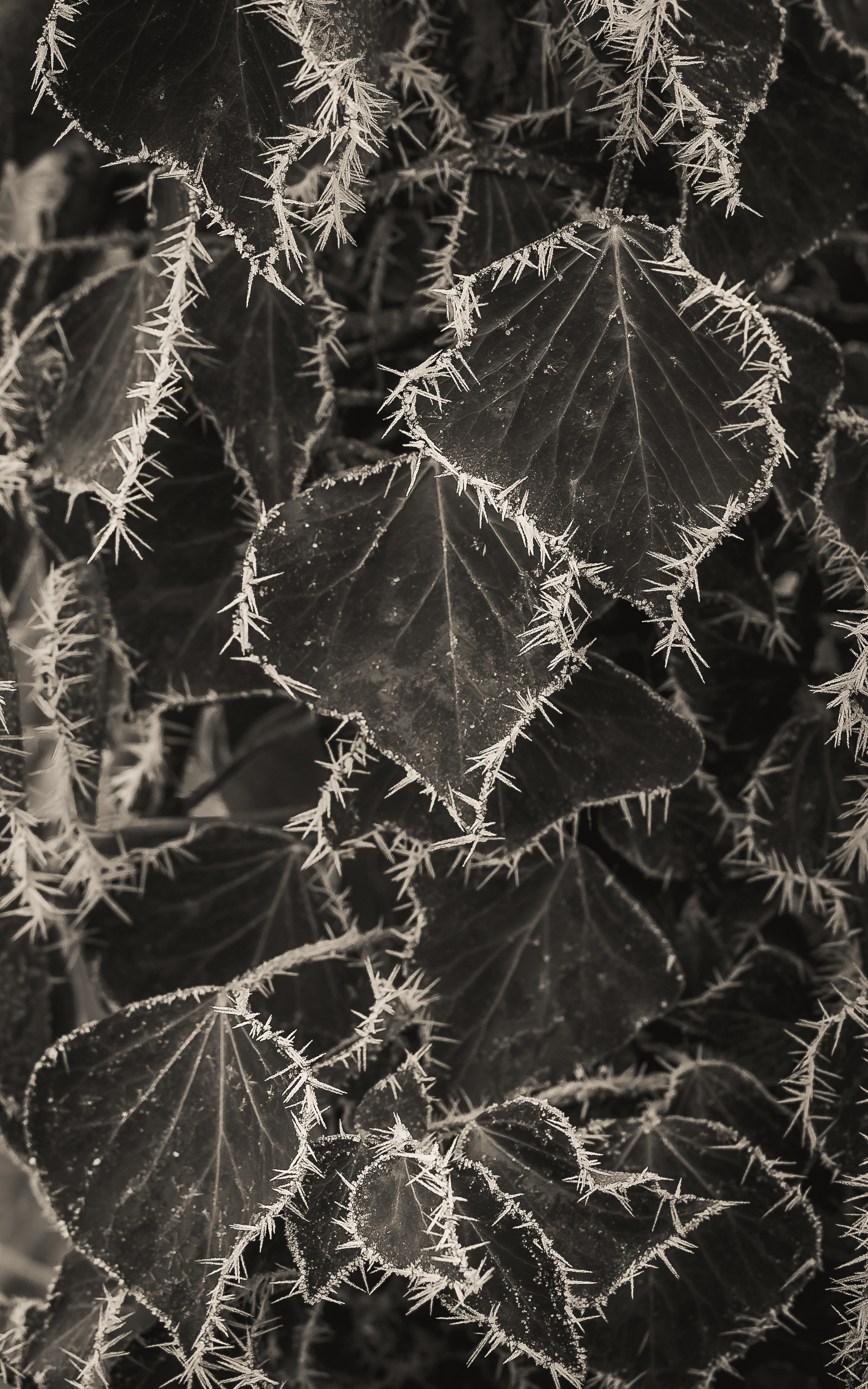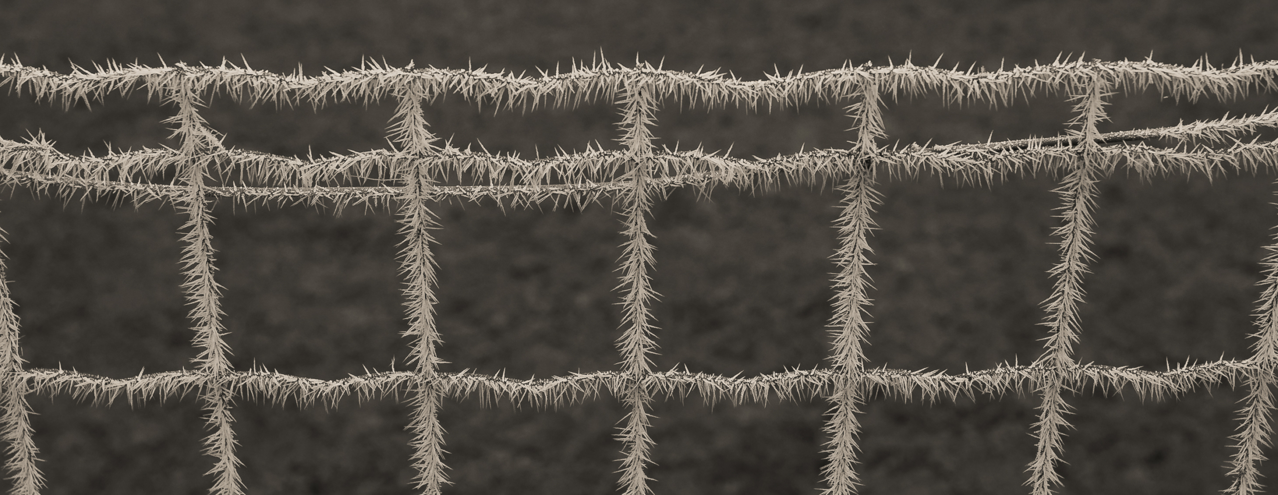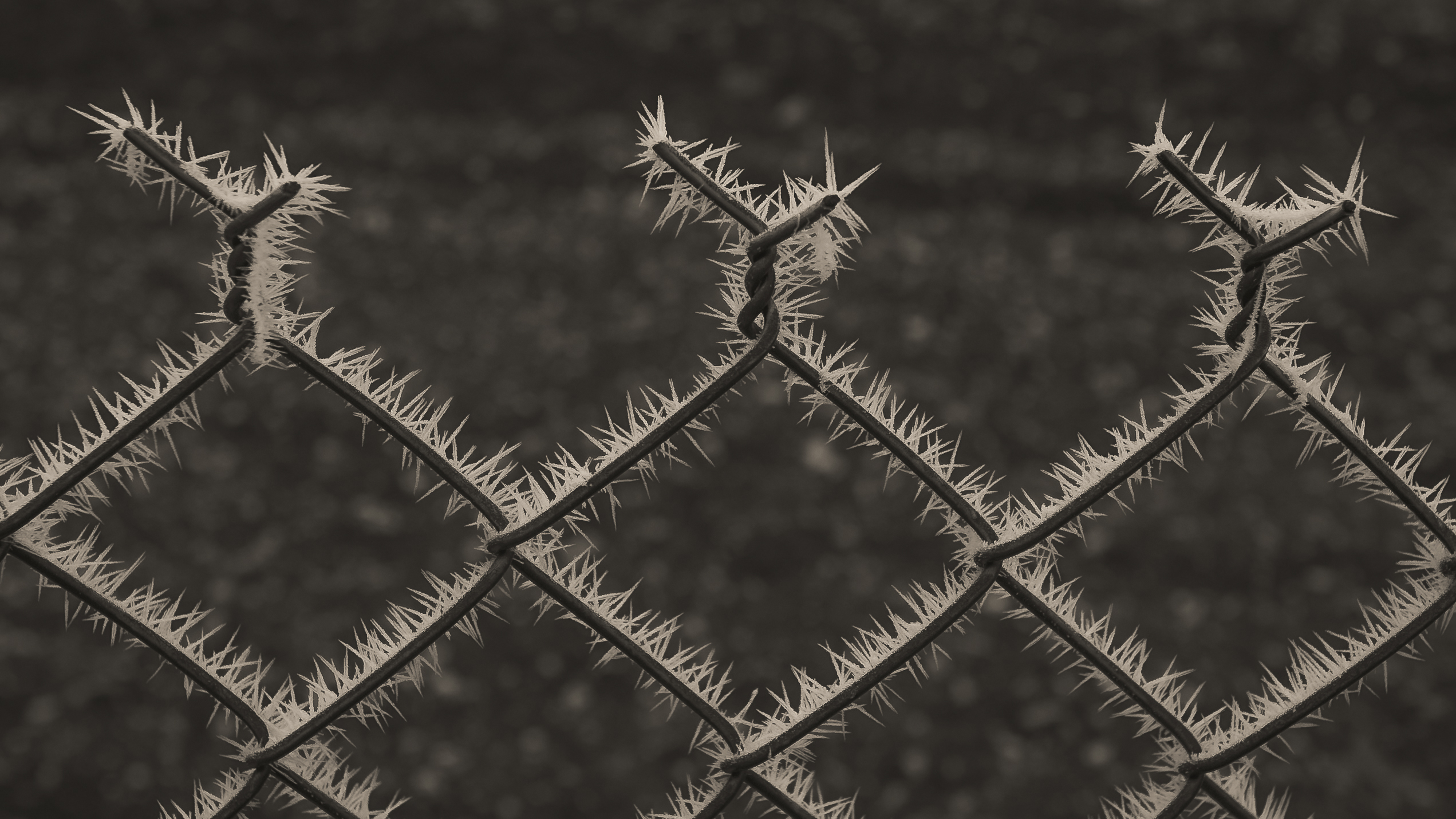 Le gel enserre les grillages et les feuilles de lierre,