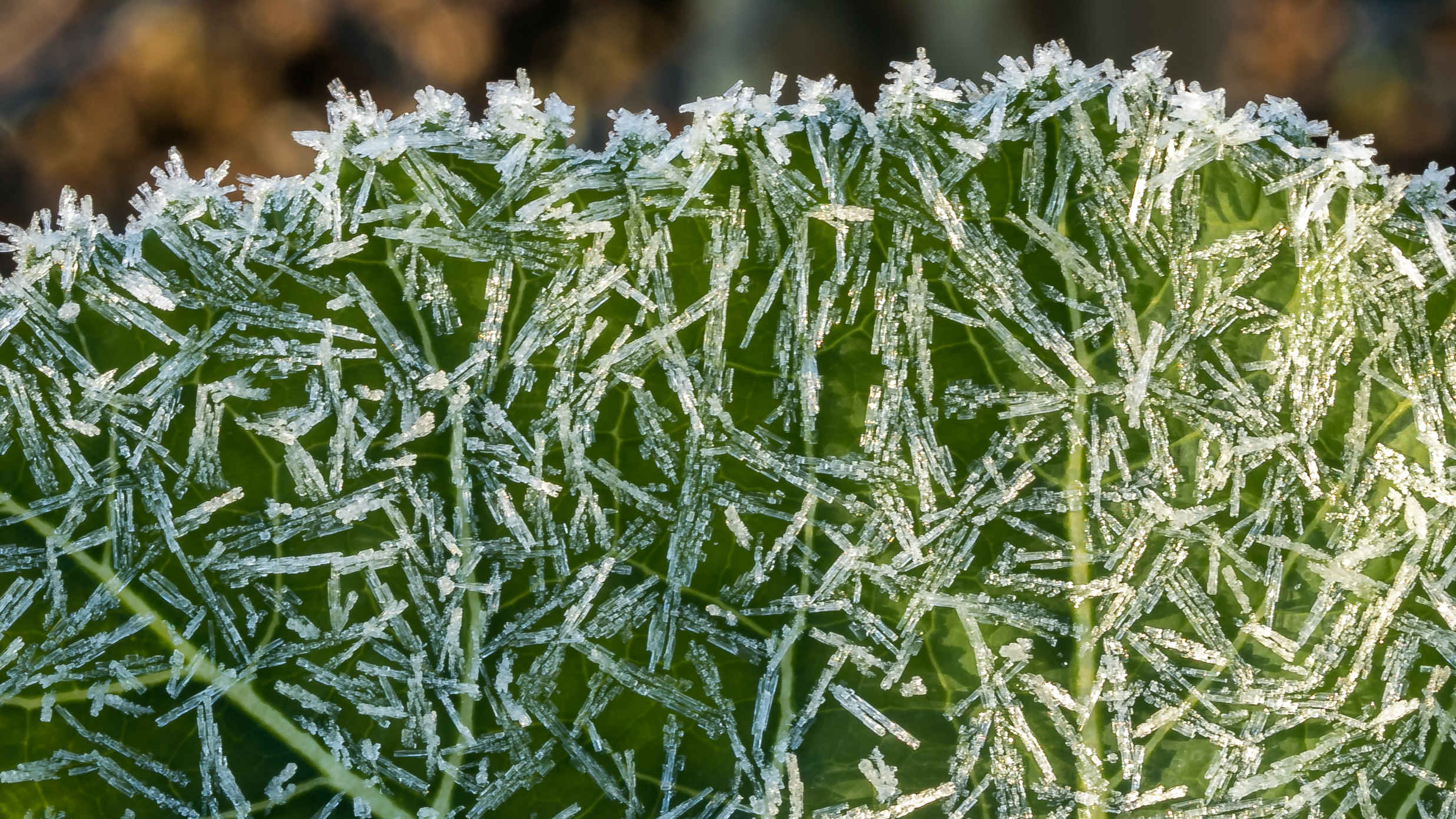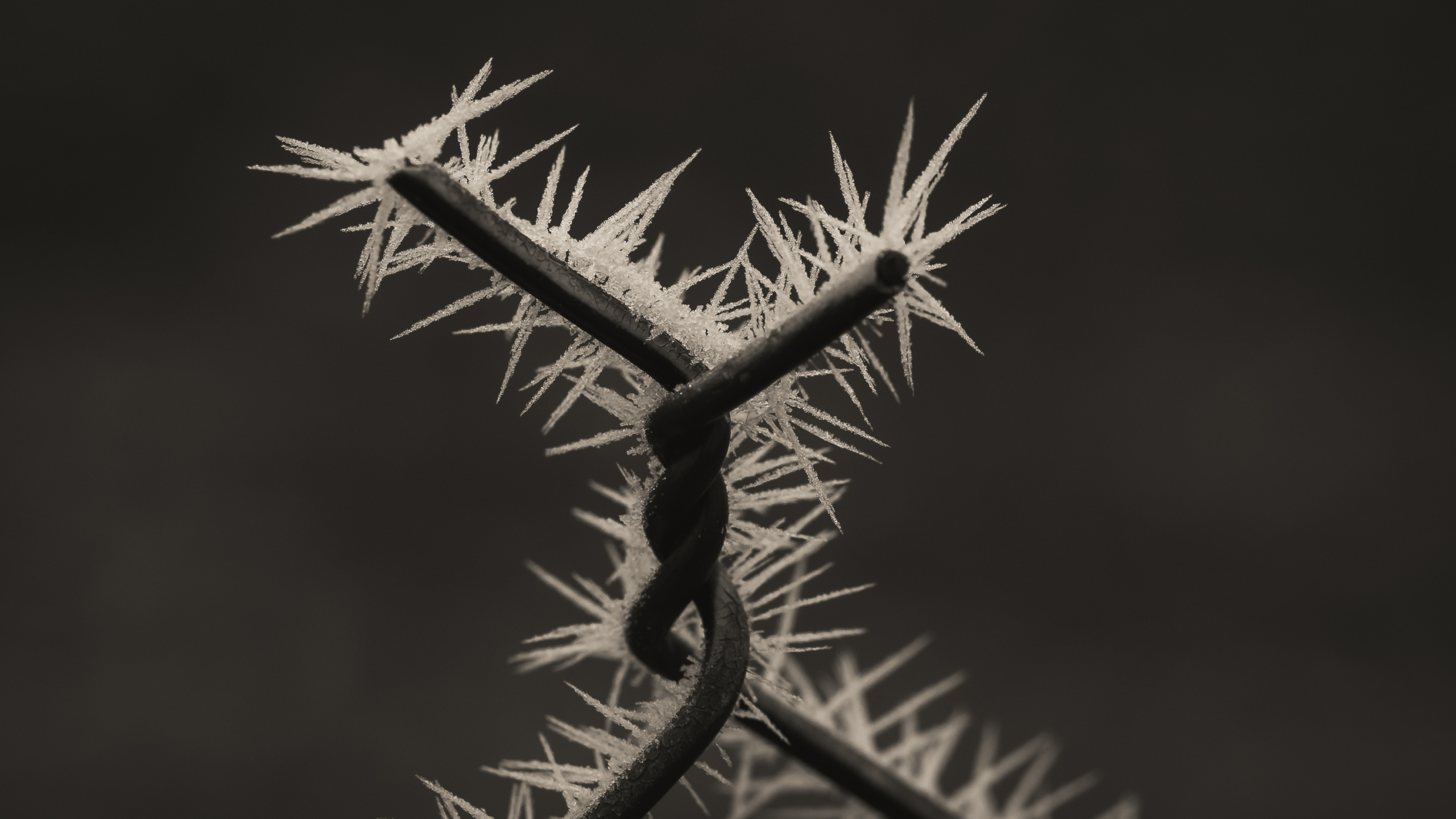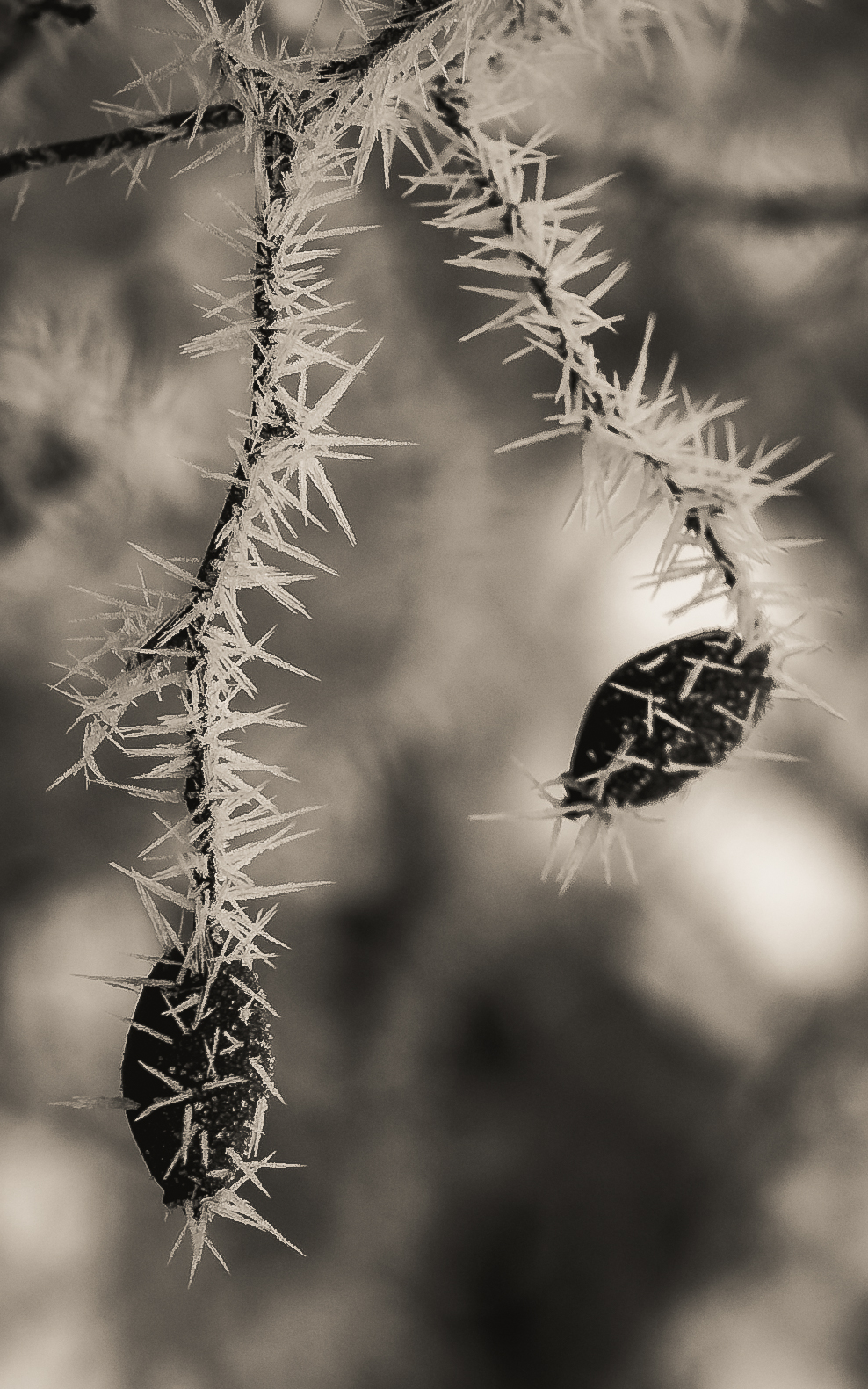 Le gel enserre les grillages et les feuilles de lierre,